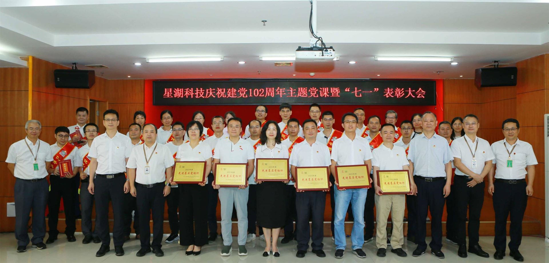 為熱烈慶祝中國共產黨成立102周年,樹立典型、表彰先進,激勵各級黨組織和廣大共產黨員、黨務工作者在公司融合發展、高質量發展新征程上奮力開拓、建功立業,6月28日下午,以“凝心鑄魂學思想 砥礪奮進新征程”為主題的星湖科技“七一”表彰大會暨慶祝中國共產黨成立102 周年合唱比賽活動在公司大樓B幢三樓會議室隆重舉行。公司在家的班子成員、中層以上管理人員與員工們歡聚一堂,熱烈慶祝中國共產黨成立102周年,共同歌頌偉大的中國共產黨,共同祝福祖國繁榮富強,祝愿星湖科技更加輝煌!